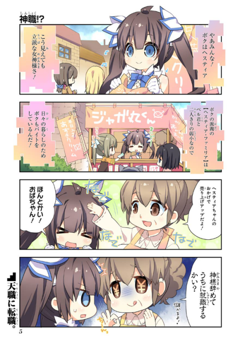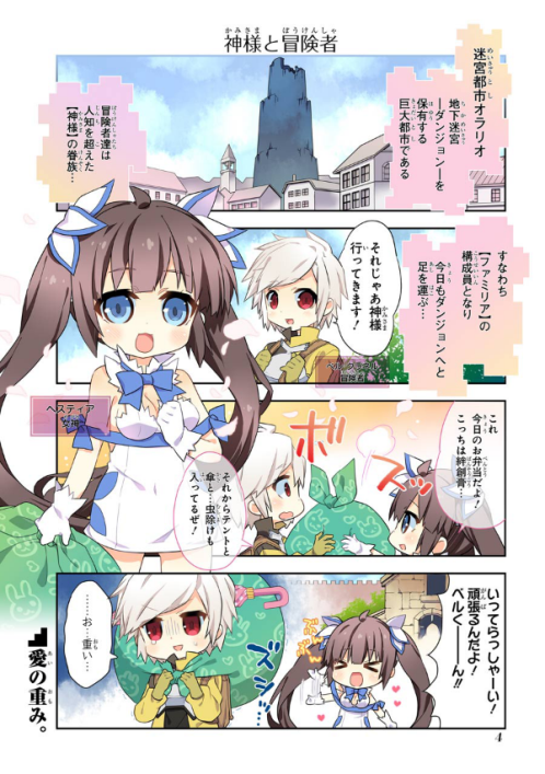 Dungeon ni Deai o Motomeru no wa Machigatte Iru Darou ka 4-koma - Kami-sama no Nichijou |