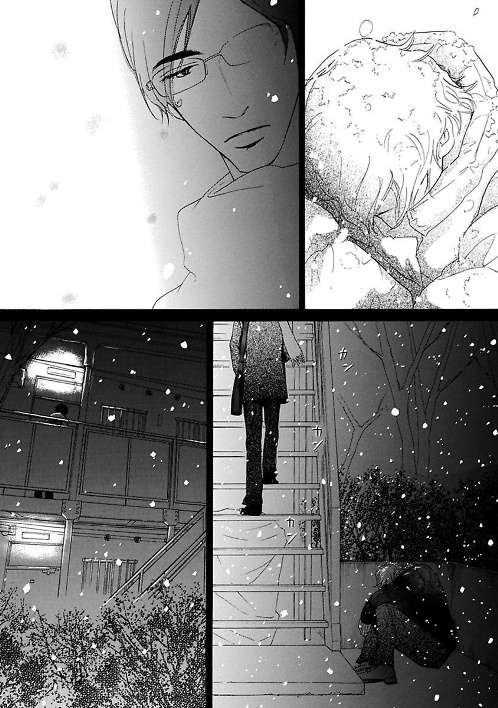 Resumo: Abandonado por seu amante em sua pior noite de Natal, Ei encontra na neve um jovem com um gatinho. Dessa forma, ele conhece Junpei. O sério Ei deixa que o jovem e o gatinho (Yakinori) ocupem seu coração. Cada dia que passa o deixa mais feliz. Até que um dia seu ex reaparece. O que Ei fará? Uma ferida de amor que vai cicatrizando, desenhada calidamente para refletir esse sentimento puro. Uma verdadeira jóia!